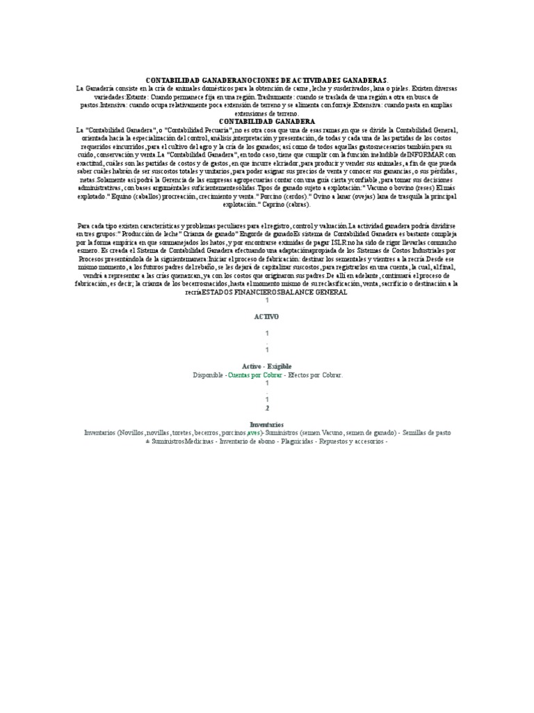 CONTABILIDAD GANADERANOCIONES DE ACTIVIDADES GANADERAS.