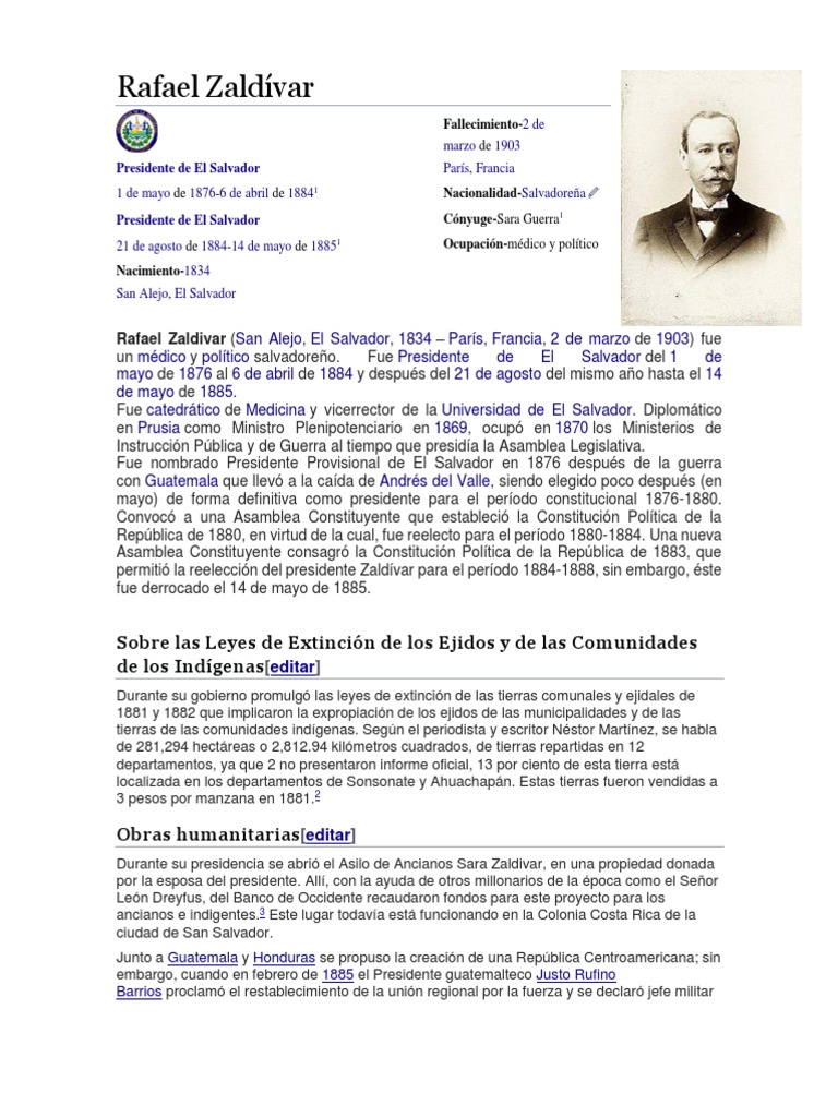 1885 por el entonces presidente de El Salvador, Rafael Antonio Zaldívar, y que su primer