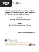 negocio, la misión, visión y objetivos del plan de negocio, siendo el
