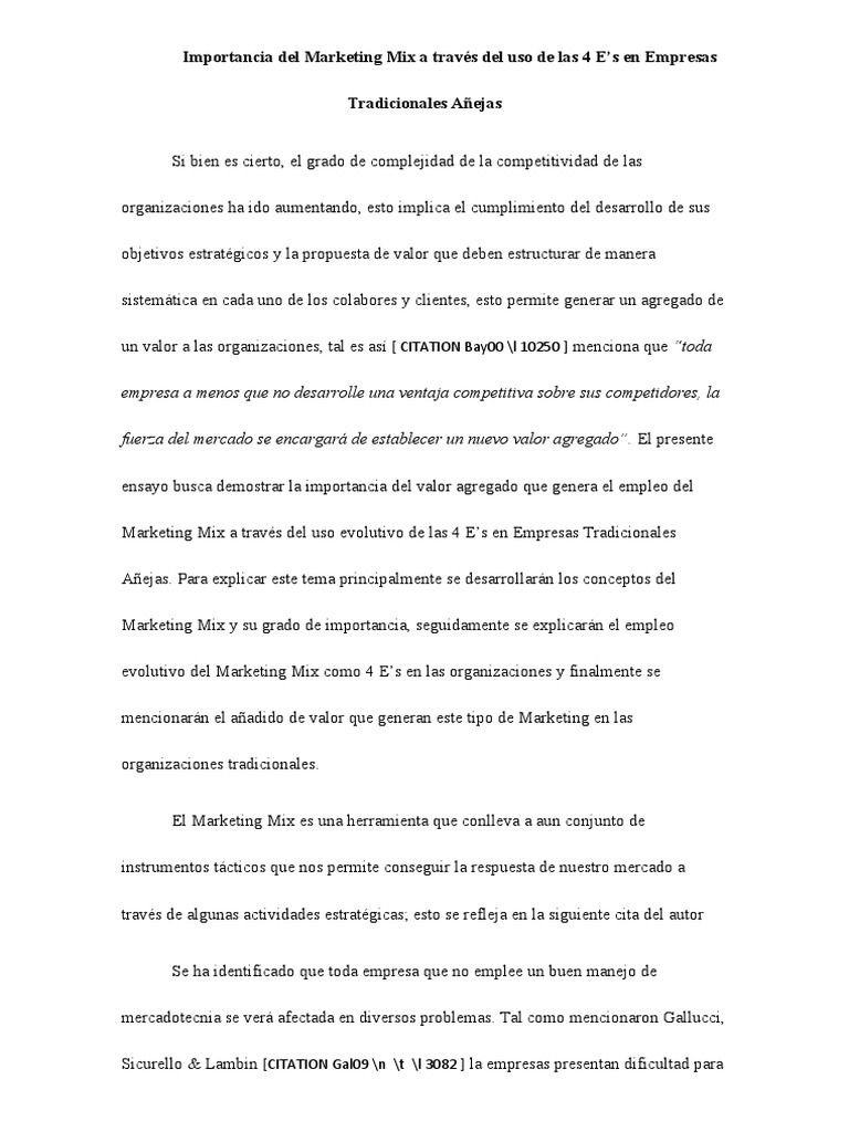 Finalmente, el marketing mix halla evolucionado se considera muy poco relevante