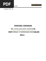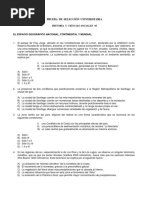 El documento es un ensayo de evaluación en Historia, Geografía y Ciencias Sociales que consta de 80 preguntas, de las cuales 75 se consideran para el puntaje. Incluye instrucciones sobre el formato de respuesta y varios temas relacionados con la distribución de la población, la expansión urbana y el cambio climático. También presenta gráficos y mapas para analizar la demografía y el desarrollo social en diferentes regiones.