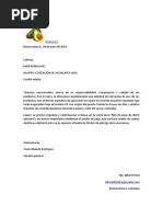 Este documento es una solicitud para registrarse en el Registro Nacional de Exportadores de Café de Colombia. Contiene información personal y corporativa del solicitante, como su nombre, NIT, dirección, y detalles sobre la cantidad de café que planea exportar y la empresa procesadora que utilizará. El solicitante debe adjuntar documentos de identificación y declarar la fuente legal de sus ingresos para completar el proceso de registro.