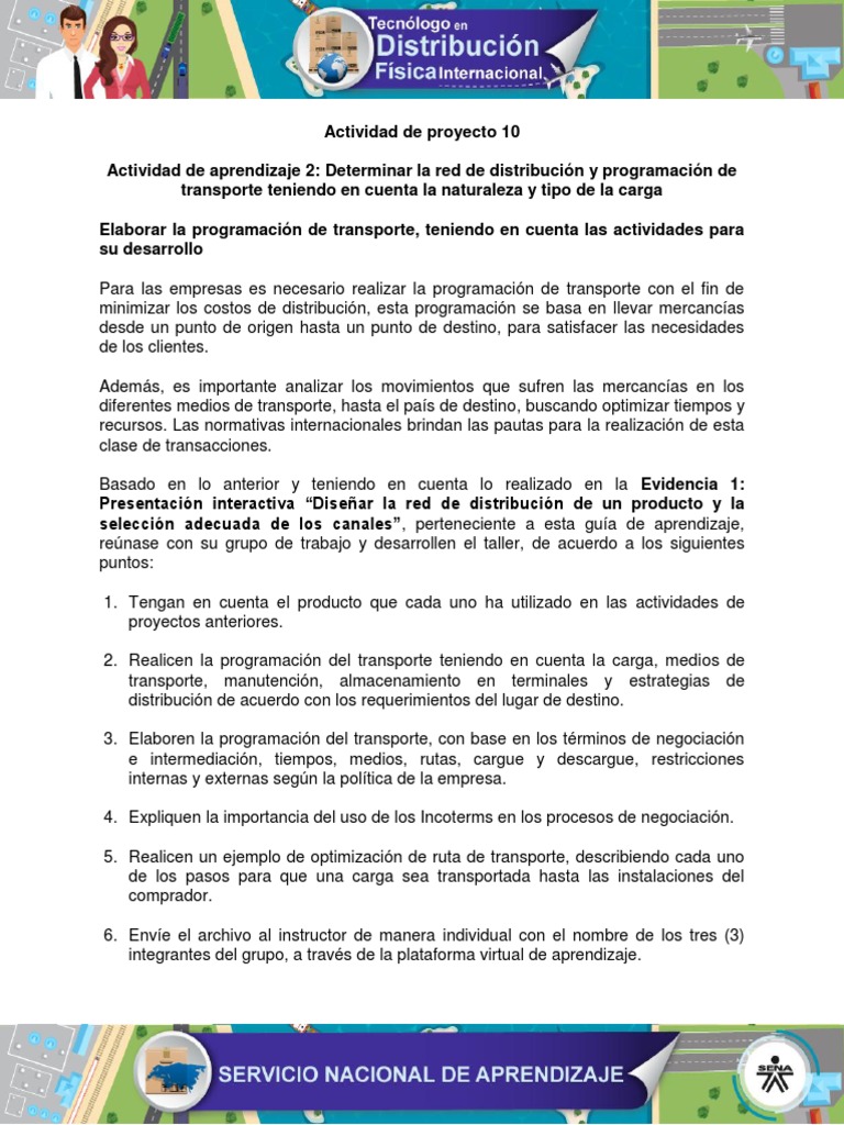 Evidencia 5: Taller “Elaborar la programación de transporte, teniendo en cuenta las