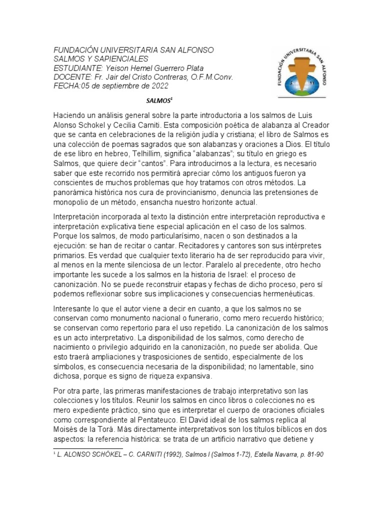TRbajo Lectura de Salmos Luis Alonso Schokel