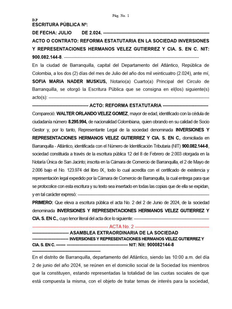 Barranquilla, se otorgó la Escritura Pública que se consigna en el(los) siguiente(s)