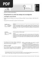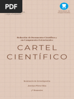 El documento describe los elementos fundamentales de un cartel científico, incluyendo una sección sobre qué es un cartel científico, la distribución de contenido con 8 secciones principales, y breves descripciones de cada sección como título, abstracto, introducción, objetivos, materiales y métodos, resultados y conclusiones.
