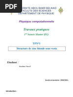 Dans ce TP en pris à utiliser Vesta pour construire le zinc blende qui a comme structure cristalline : cubique a