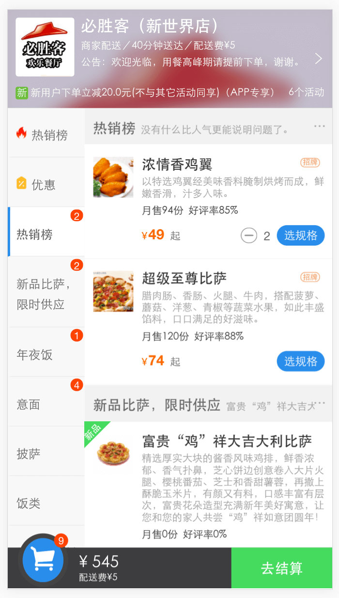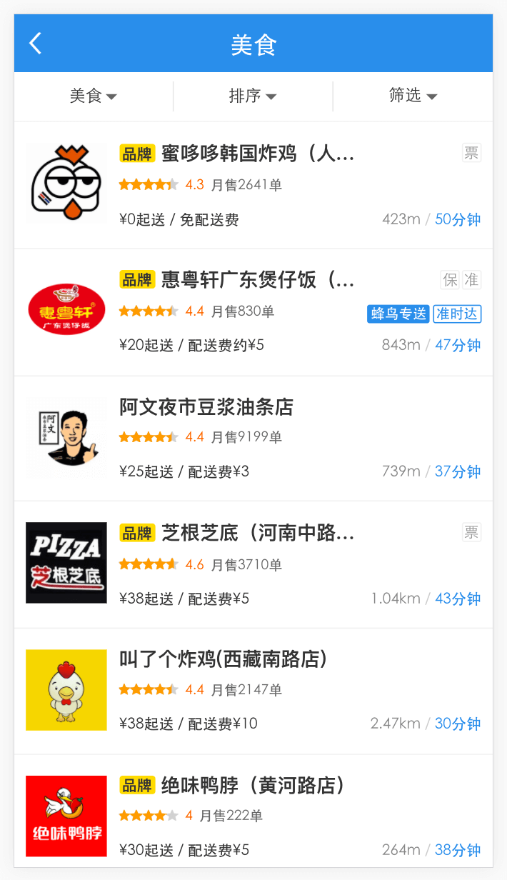 - 根据距离、销量、评分、特色菜、配送方式等进行排序和筛选 -- 完成