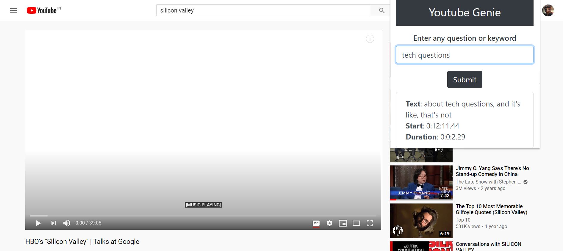 A chrome extension which helps you navigate to the part of video having the content you are looking for. We are at the start of the project and thus, will keep on building to improve the result accuracy