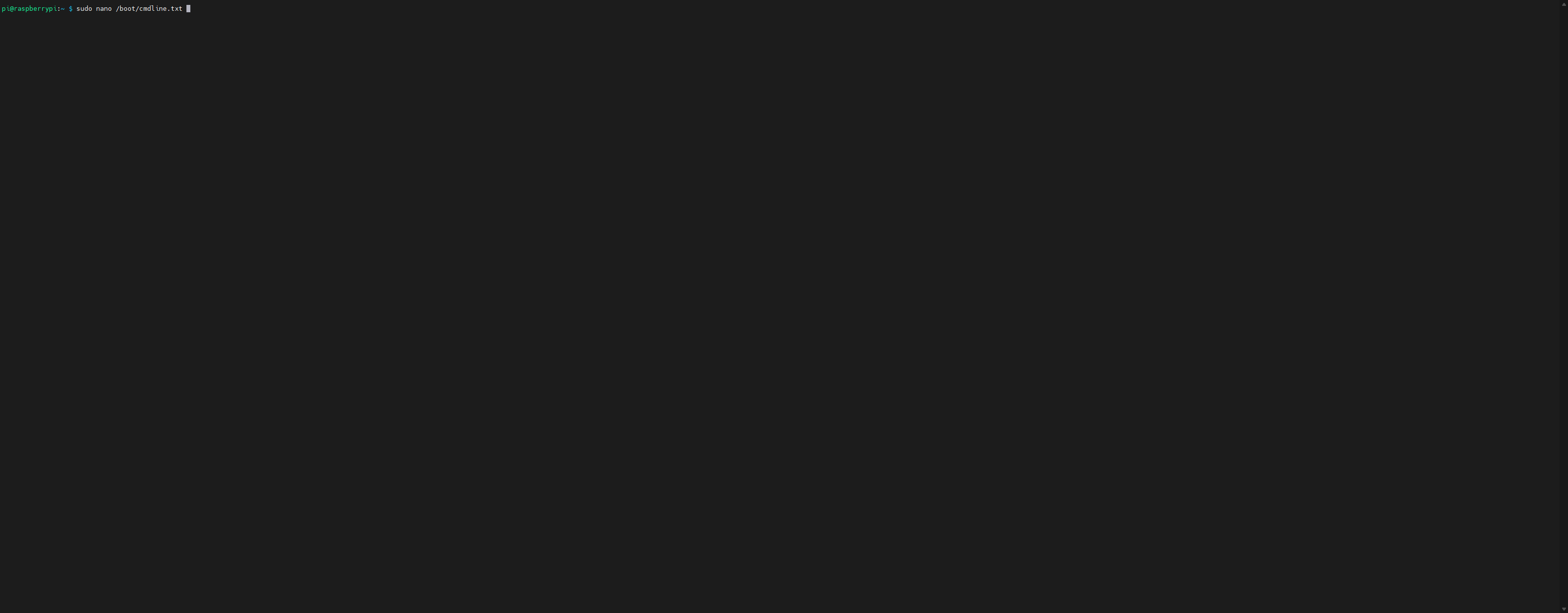 To edit the file, you can use a text editor called Nano via the nano /boot/cmdline.txt command.