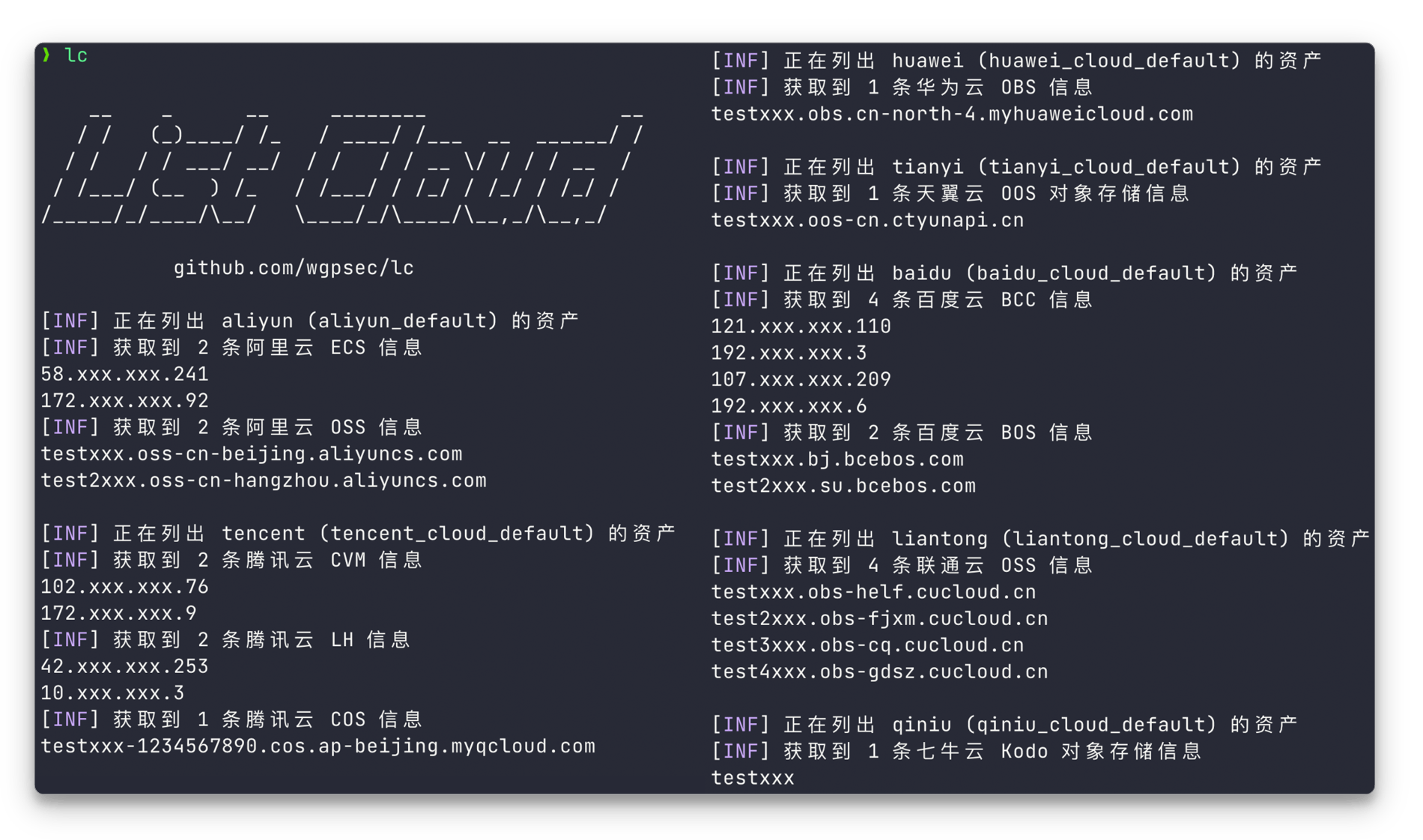 lc (list cloud) 是一个多云攻击面资产梳理工具