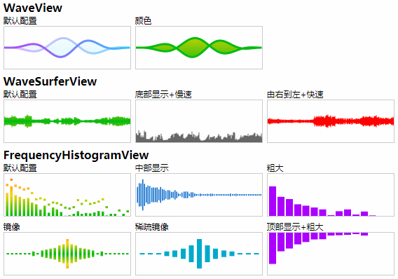 //可实时绘制波形(extensions目录内的waveview.js、wavesurfer.view.js、frequency.histogram.view.js插件功能)