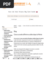 peccato: sono manipolabile, sono esposto. Non mi faccio abbindolare, non mi faccio strumentalizzare soltanto se penso con la mia testa, se mi faccio idee mie, se scelgo ci che mi sta bene e ci che non mi sta bene. Questa presa di posizione presuppone per una mente mia. pensiero e intuizione del cuore devono andare insieme, per perdere meno colpi possibili nella testa e nel cuore. parlavo dei due grandi peccati: uno la mente che pensa, pensa, pensa, e perde di vista il cuore; e laltro un cuore che va in brodo di giuggiole, che piange, che ride, ma senza un minimo di comprendonio Sembrano verit lapalissiane, ma non ci rendiamo conto delle conseguenze enormi che hanno nella vita. evitare il peccato significa coltivare tutte e due queste dimensioni dellumano: rendere il pensiero sempre pi caldo, sempre pi amante, sempre pi intuitivo; e rendere il cuore sempre pi luminoso, sempre pi saggio. Non amare a vanvera, ma amare a ragion veduta. torniamo ora a quello che ho da dire sul dopo morte: cosa vivono i morti? Supponiamo che io sappia tutto ci che avviene dopo la morte e che stia parlando a gente che non lo sa. ieri abbiamo anticipato un pensiero fondamentale: la paura della morte, per noi gente comune, benpensante (non mi sto rivolgendo a degli iniziati), consiste nellignorare del tutto il mondo invisibile e conoscere soltanto quello visibile, che la nostra unica realt. dunque, quando una persona muore, per noi sparisce: questo il punto di partenza. La paura della morte dipende dal fatto che secolo per secolo, millennio per millennio, la coscienza umana si sentita sempre pi a casa nel visibile (ci che vedo, ci che sento, ci che tocco, ci che mangio e via dicendo), perch lo spirituale, innanzi tutto, non sappiamo nemmeno se esiste; e, in secondo luogo, ci chiediamo perch dovrebbe interessarci, dal momento che non possiamo mangiarlo, n toccarlo, n altro. vorrei partire dallaffermazione fondamentale della cutura cristiana, che bene o male la nostra. mi scuso fin da ora con voi, se user qualche parola che potr urtarvi, perch, nonostante il nostro