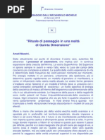 il Cristo, larchetipo dellumano, vive la morte citando le scritture del giudaismo come preparazione al fenomeno umano. Studiando i vari manoscritti di matteo e di marco, troverete che il Cristo, morendo sulla croce, cita la Scrittura, in ebraico naturalmente, e dice: El, 3 El, lam sciavachtani? ( .) Viene trascritto con lettere greche, per la dicitura ebraica e si rif ai Salmi (21,1), si rif addirittura a processi di iniziazione. in altri manoscritti, invece, ci sono due lettere diverse, soltanto due, ma la differenza enorme: El, El, lam asaftan (.) Nel primo caso sciavachtani significa innalzare, glorificare, portare in alto, nel secondo, asaftan significa abbandonare. Ci ho studiato sopra e ho scoperto che esistono centinaia di manoscritti. alcuni traducono, traslitterano in greco asaftan, altri sciavachtani. ma il Cristo, morendo sulla croce, ha detto: mio dio, mio dio perch mi hai abbandonato?; oppure: Quanto mi hai esaltato!? La morte paura dellabbandono oppure esaltare, innalzare? Lesperienza della morte duplice: per lessere umano che noi conosciamo unesperienza di paura, di solitudine, di abbandono, un venir lasciati soli. ma nello stesso tempo, nel momento in cui veramente si muore, in cui linsieme delle forze vitali che rudolf Steiner chiama il corpo eterico lascia il corpo fisico, c veramente un assurgere, un innalzarsi. Finalmente tutte le forze vitali, impregnate della memoria di tutta la vita (nel corpo eterico infatti ci sono tutte le percezioni, tutti i pensieri, tutte le sensazioni di unintera vita), vengono liberate dal compito di strutturare e mentenere vivo il corpo fisico. il Cristo, lessere umano per eccellenza, fa lesperienza della morte come spada a doppio taglio dellevoluzione, e lo fa in modo archetipico per tutti noi. Nella misura in cui, ognuno si identificato in tutto e per tutto con ci che materiale, fisico, perituro fa parte della nostra libert far nella morte lesperienza di venire abbandonato, di essere lasciato. e lessere dellamore non poteva amare lumanit se non facendo Lui