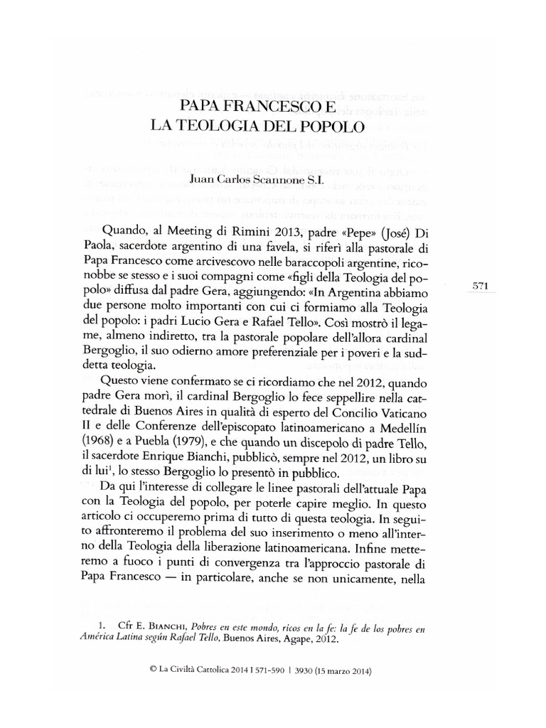 Salva Scannone Papa Francesco e La Teologia Del Popolo per dopo