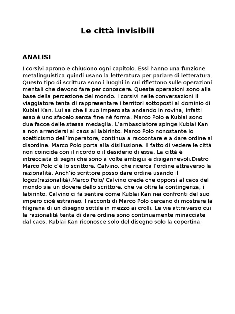 labirinto. Calvino ci fa sentire come Kublai Kan nei confronti del suo