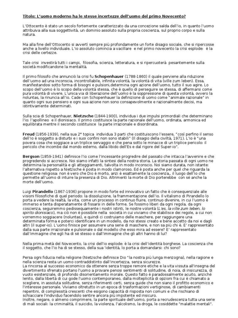 Titolo: Luomo moderno ha le stesse incertezze delluomo del primo Novecento?