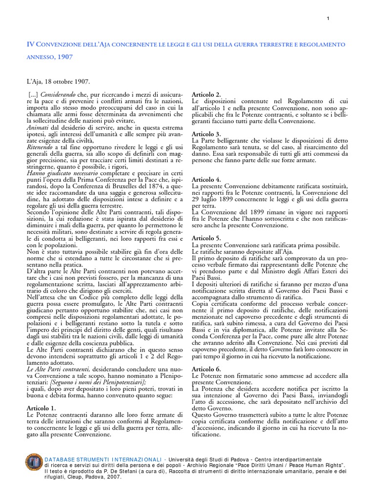 dellAja del 18 ottobre 1907 relativa ai diritti e doveri degli stati e delle