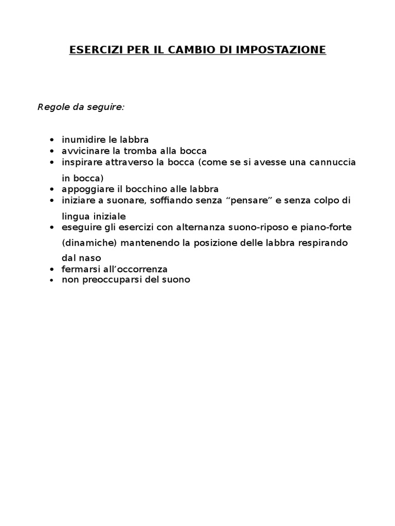 ESERCIZI PER IL CAMBIO DI IMPOSTAZIONE