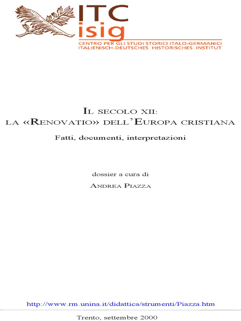 Piazza Andrea, Il Secolo XII - La Renovatio Dell'europa Cristiana PDF