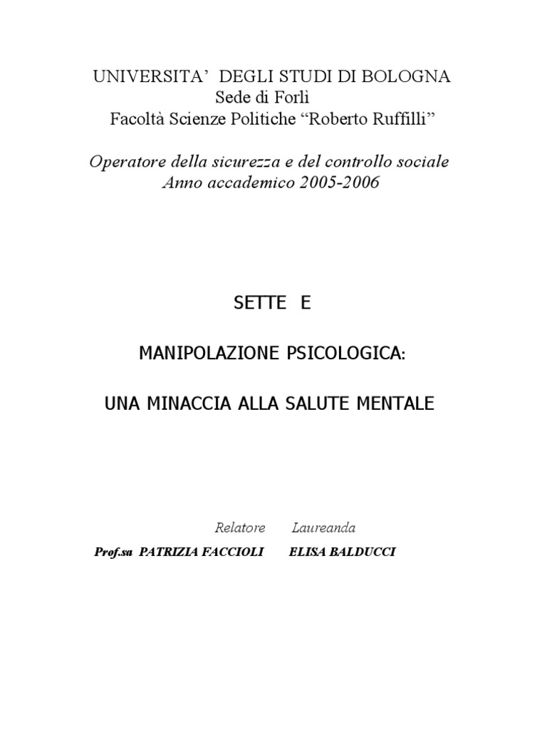 Tesi Di Elisa Balducci Sette e Manipolazione Psicologica