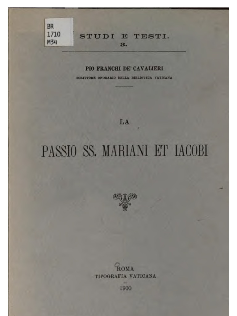 Pio Franchi De'cavalieri, La Passio SS. Mariani Et Iacobi (Studi e Testi, 3), Roma 1900