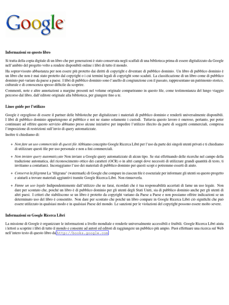 Google è orgoglioso di essere il partner delle biblioteche per digitalizzare i materiali di pubblico dominio e renderli universalmente disponibili.