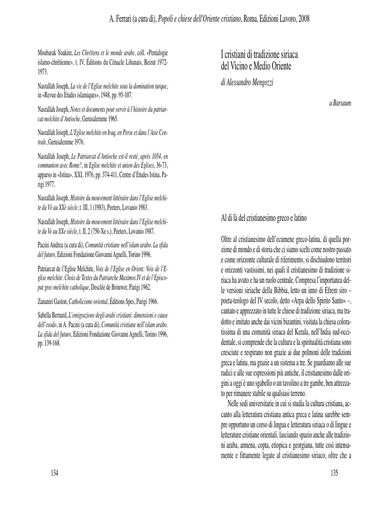 Mengozzi, A., I Cristiani Di Tradizione Siriaca