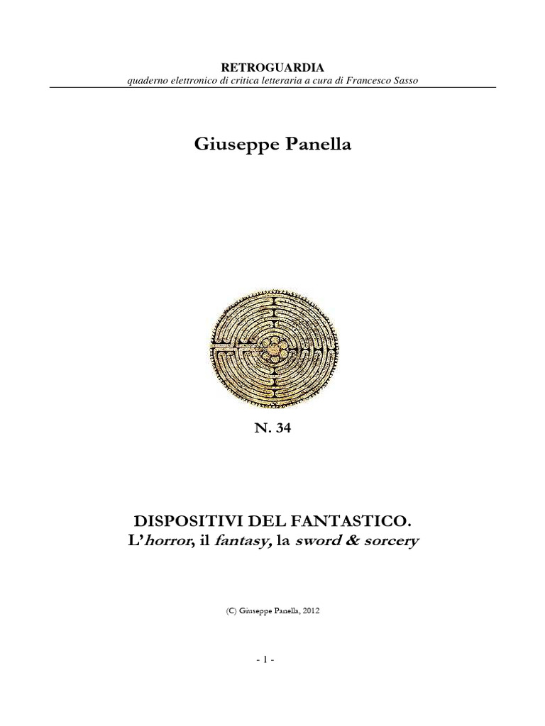 Giuseppe Panella, DISPOSITIVI DEL FANTASTICO. L’horror, il fantasy, la sword & sorcery in I figli di