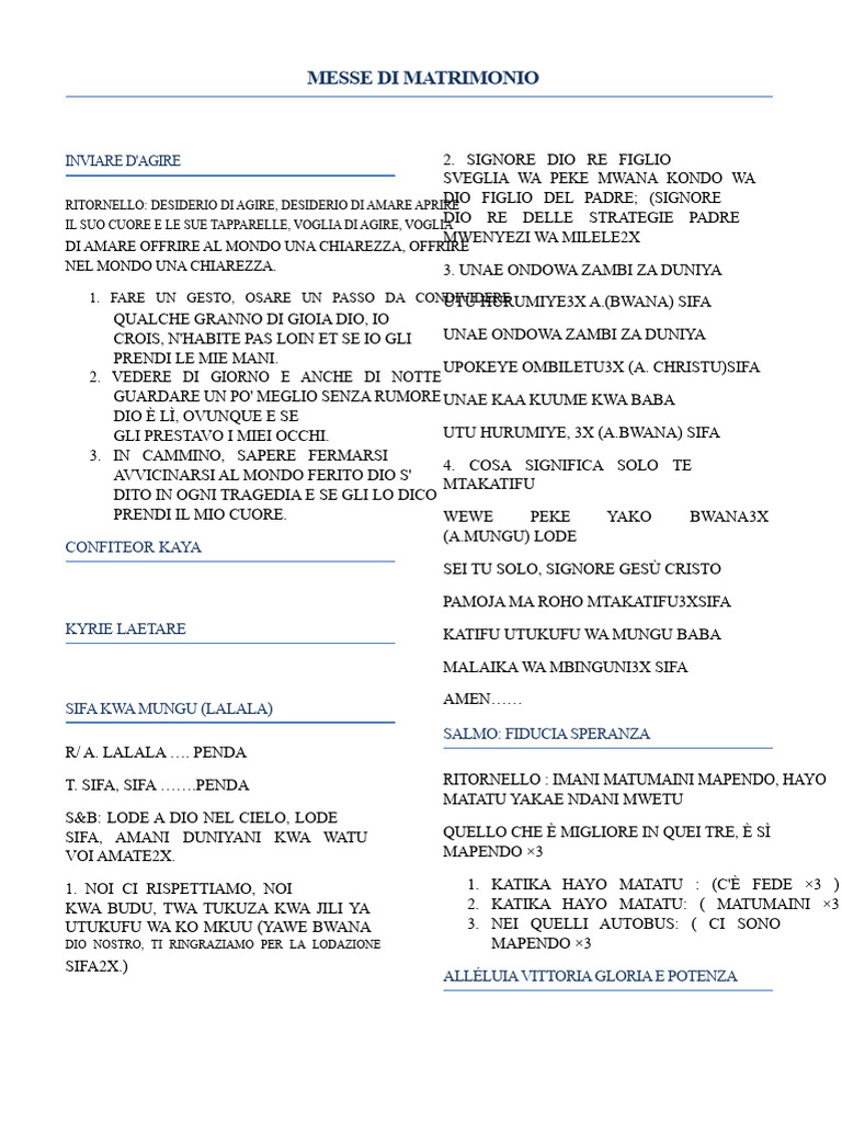 1. NINA ISHI BWANA KWA NEEMA YAKO, RITORNELLO: L'HO INCONTRATO EH EH LA MIA VITA HA
