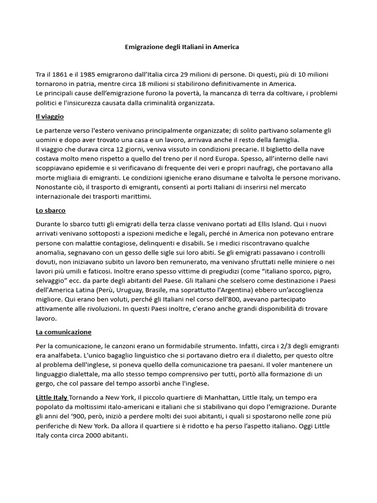 lavori più umili e faticosi. Inoltre erano spesso vittime di pregiudizi (come “italiano sporco, pigro,