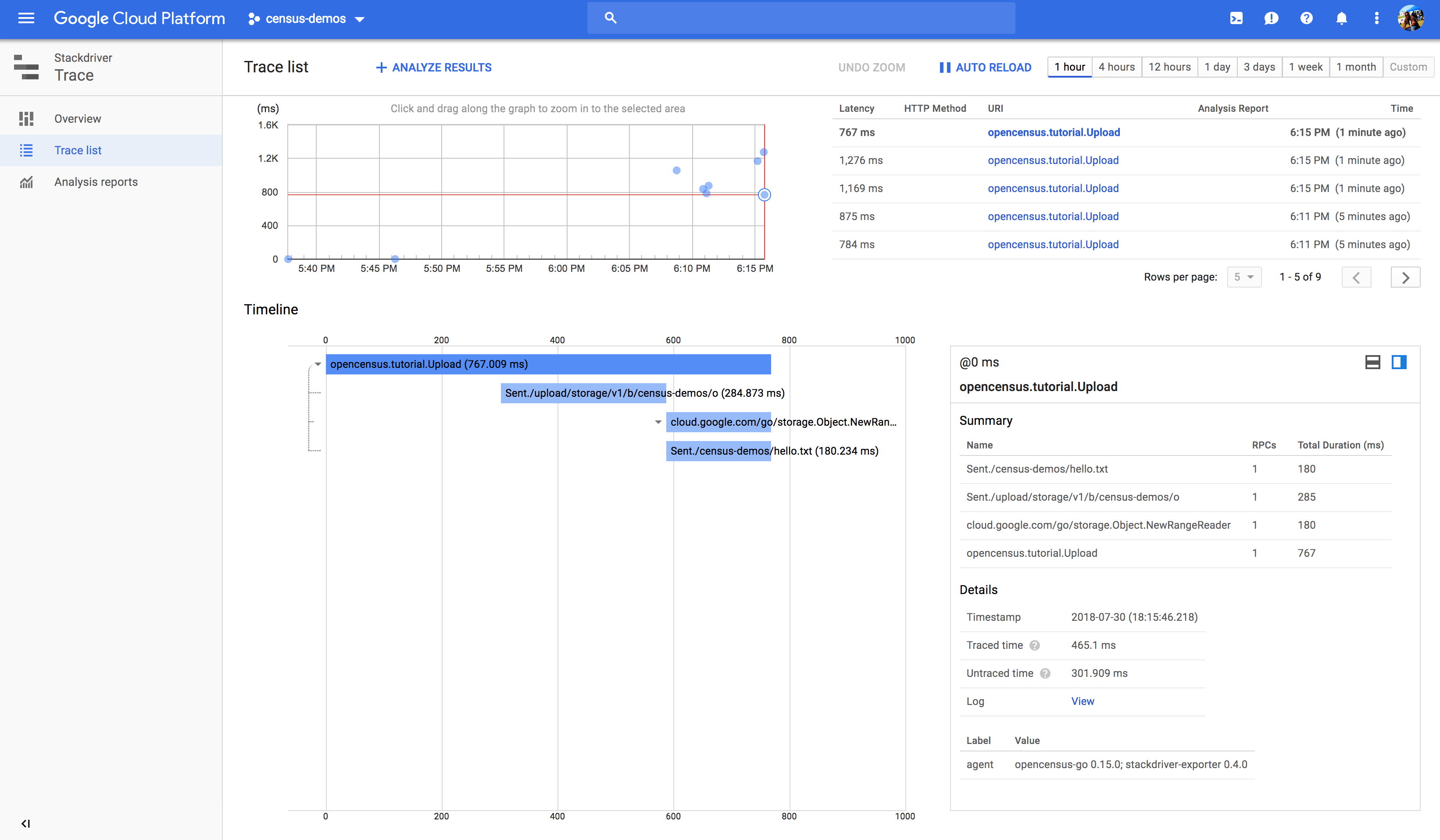 Cloud Storage ’s Go package was already instrumented for Tracing with OpenCensus.