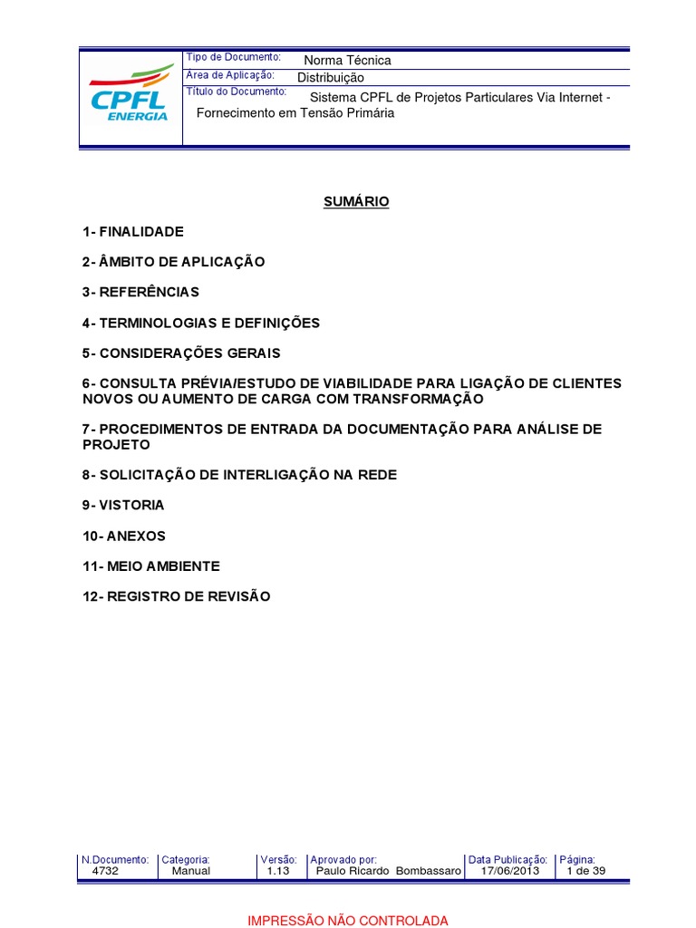 GED-4732 Sistema CPFL de Projetos Particulares Via Internet - Fornecimento em Tensão Primária