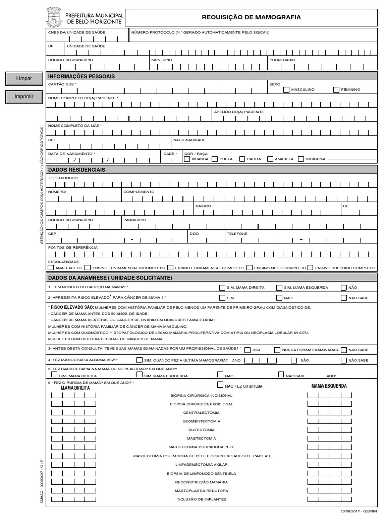 NÚMERO DO EXAME (A SER PREENCHIDO PELO SERVIÇO DE MAMOGRAFIA)