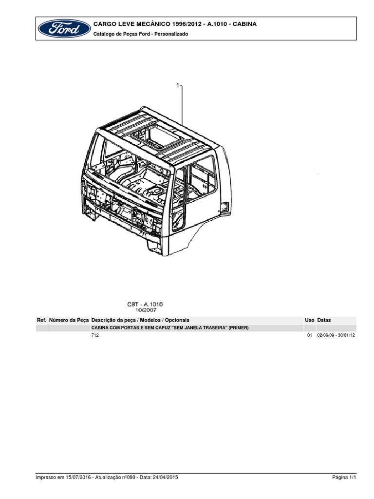 Ref. Número da Peça Descrição da peça / Modelos / Opcionais Uso Datas