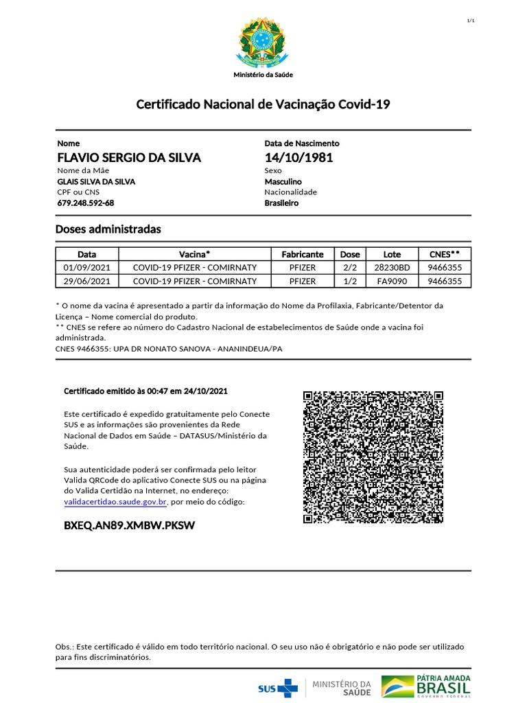 Obs.: Este certificado é válido em todo território nacional. O seu uso não é obrigatório e não pode ser utilizado