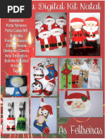 Este documento fornece moldes gratuitos da Sagrada Família (Maria, Jesus e José) para serem usados em presépios e decorações de Natal. Inclui instruções passo a passo para fazer a Sagrada Família com feltro e links para outros moldes criativos como animais, personagens e enfeites temáticos.