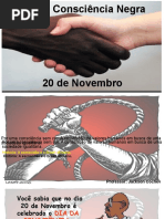 O documento resume a história do Quilombo dos Palmares, o maior quilombo da história do Brasil, liderado por Zumbi dos Palmares. Também discute o racismo estrutural no Brasil após a abolição e a falsa ideia da democracia racial.