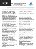 Este documento apresenta a matriz de referência do 5o ano do SAEB sobre procedimentos de leitura. Ela está dividida em seis seções que abordam procedimentos como localizar informações explícitas, inferir significados, identificar temas, distinguir fatos de opiniões, interpretar textos com auxílio de material gráfico, reconhecer formas de tratar uma informação em textos sobre o mesmo tema, estabelecer relações entre partes do texto e identificar efeitos de sentido resultantes do uso da pontuação.