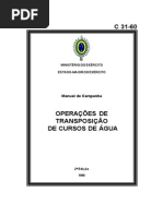 O documento descreve métodos para transpor cursos de água, incluindo cabo submerso, bóias improvisadas com cantis, calças e gondolas. Também aborda como transpor um curso de água equipado e comandar uma equipe na construção de flutuadores.