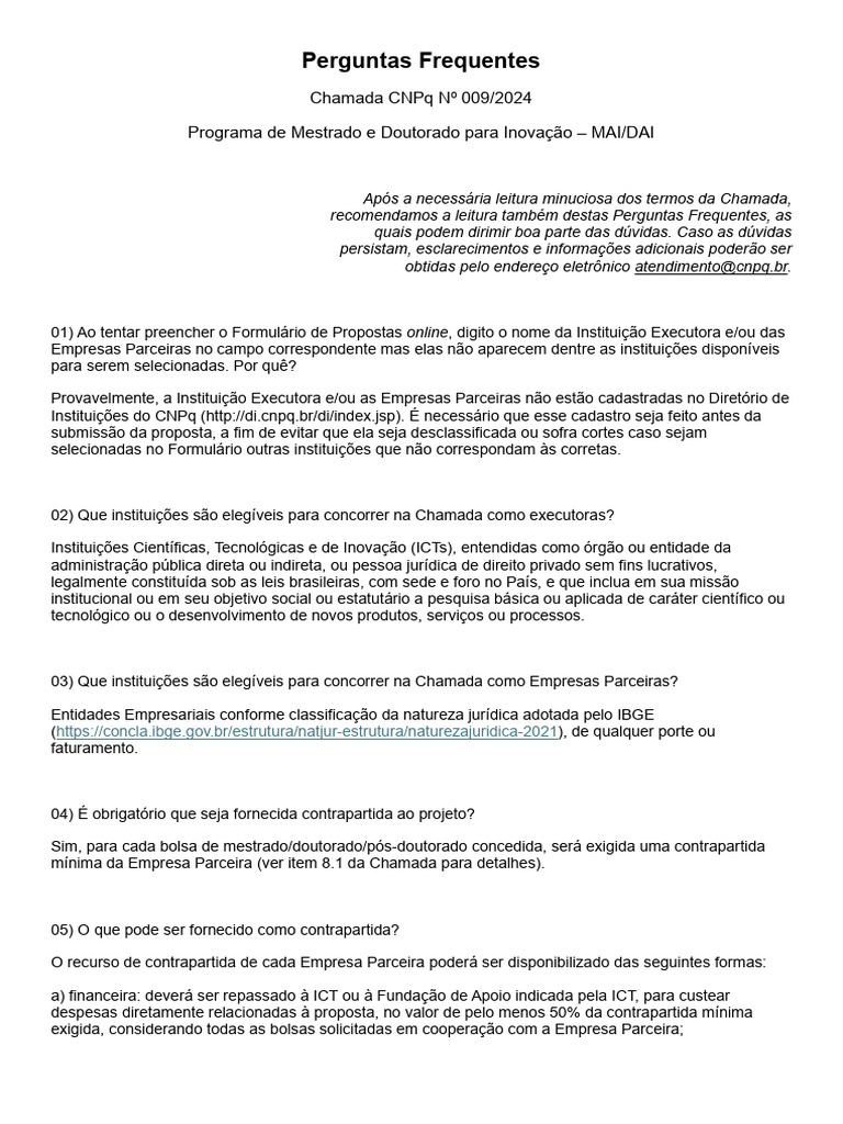 Chamada CNPq Nº 009/2024