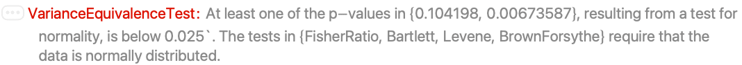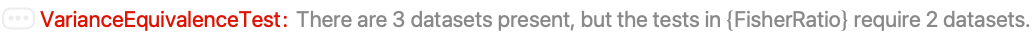 - VarianceEquivalenceTest[{data1,…}] will choose the most powerful test that applies to the data.