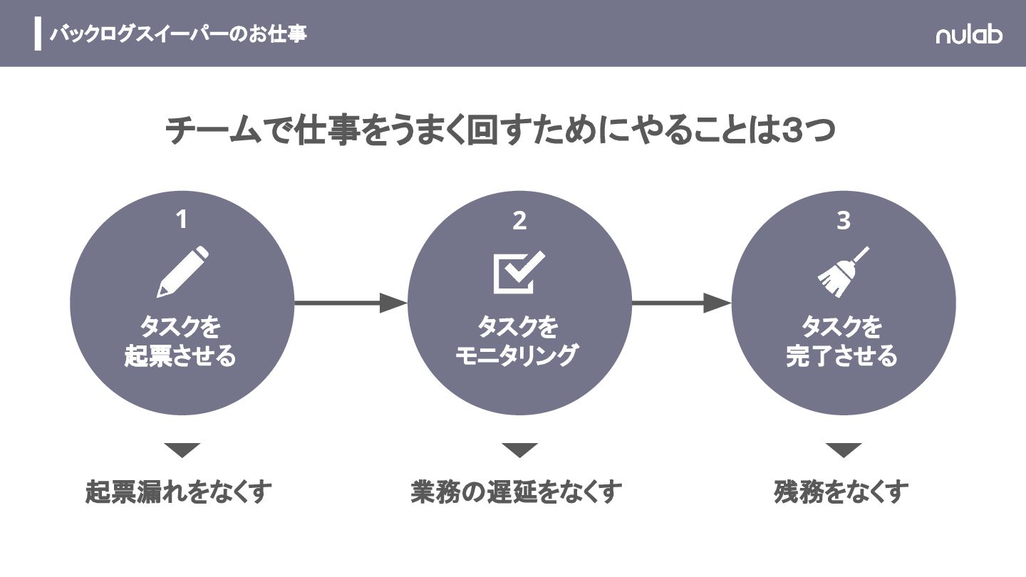 バックログスイーパーのお仕事 起票漏れをなくす 業務の遅延をなくす 残務をなくす 1 2 3 タスクを 起票させる タスクを
