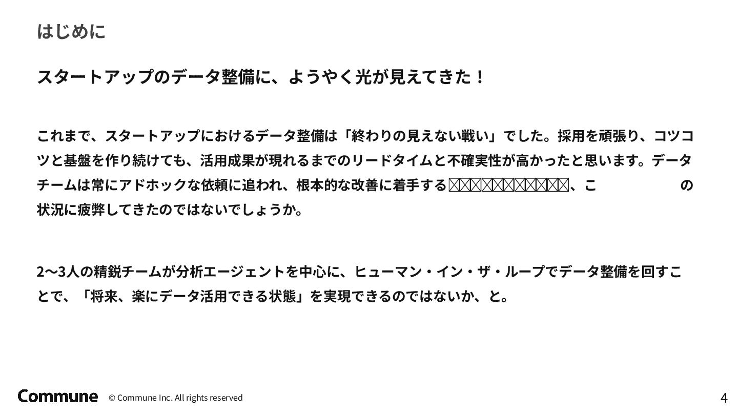 © Commune Inc. All rights reserved 1 スタートアップにおけるこれからの「データ整備」 Commune Inc.