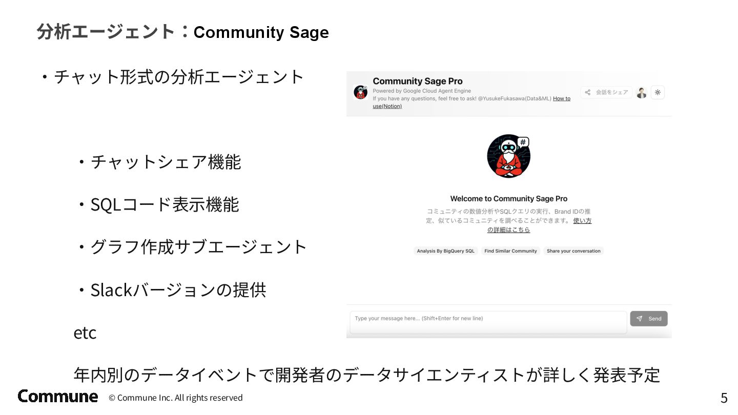 © Commune Inc. All rights reserved 分析エージェント:Community Sage 5 ‧チャット形式の分析エージェント