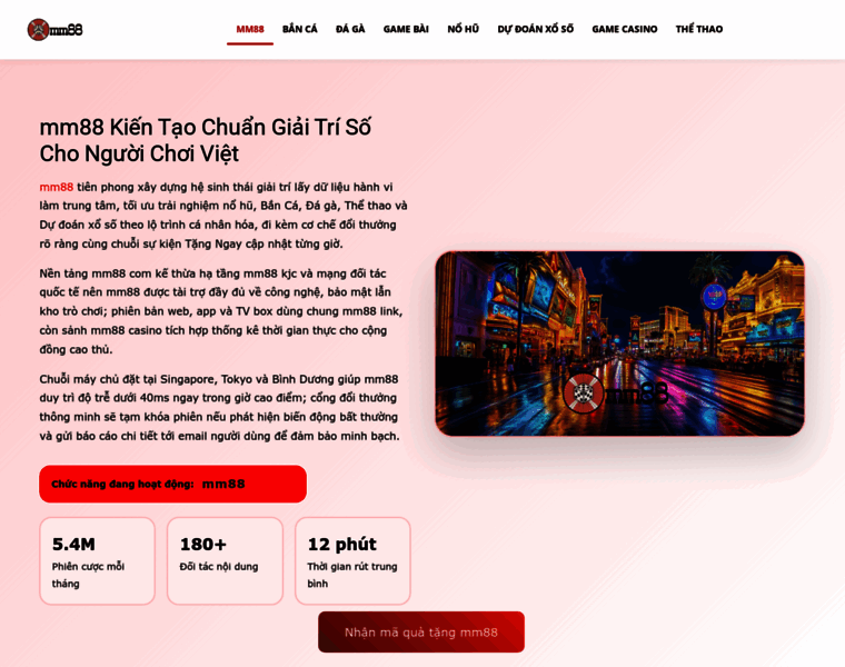Trang giới thiệu mm88 kjc với lịch sử phát triển, hướng dẫn đăng nhập, danh mục nổ hũ, Bắn Cá, Đá gà, Thể thao, ưu đãi Tặng Ngay và ứng dụng mm88 link đa nền tảng dành cho người chơi Việt.