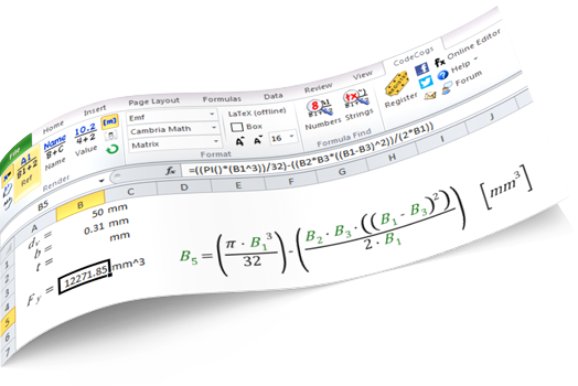 HOMELIBRARYPRODUCTSFORUMSCART Tel: +44 (0) 20 7193 9303 Email Us Join CodeCogs Login Email or Screen Name Password Login I have forgottenmy Password Or login with: http://facebook.com/ https://www.google.com/accounts/o8/id https://me.yahoo.com COMPUTINGMATHSSTATISTICSENGINEERINGFINANCEUNITSSTRINGSPHYSICS Visualise Excel CalculationsDesigned for Microsoft Excel®on Windows Equation Editor Generate equations with the World's favorite online Equation Editor.Embedding mathematics into any website or forumCreating equations for reportsGenerating LaTeX or MATHML fxRender ™ fxRender converts spreadsheet formulas into illustrated equations. Document and Audit calculationsFinding errors with a structured view of formulasPublishing formulae in a form others can read