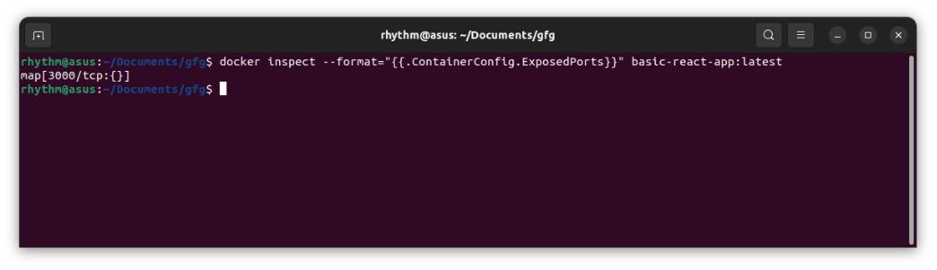 Step 4. Run the Image:.$ docker inspect --format="{{.ContainerConfig.ExposedPorts}}" basic-react-app