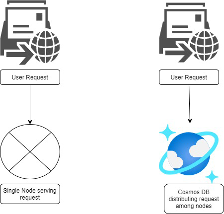 Now, Azure Cosmos DB has boomed as the answer to the big data demands of cloud-native applications. Because non-relational or NoSQL databases like Azure Cosmos DB scale horizontally rather than vertically, we can essentially uncap the throughput and volume of data in our database. Rather than upgrading hardware on a single node to serve requests faster, Cosmos DB distributes that work across multiple nodes so requests can be served concurrently. Scaling out verse scaling up is the biggest difference between relational databases and non-relational databases like Cosmos DB.