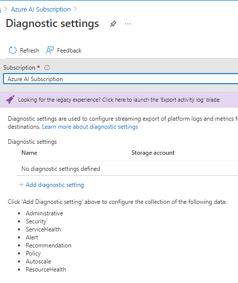 Follow the steps to configure the diagnostics for an Azure subscription.